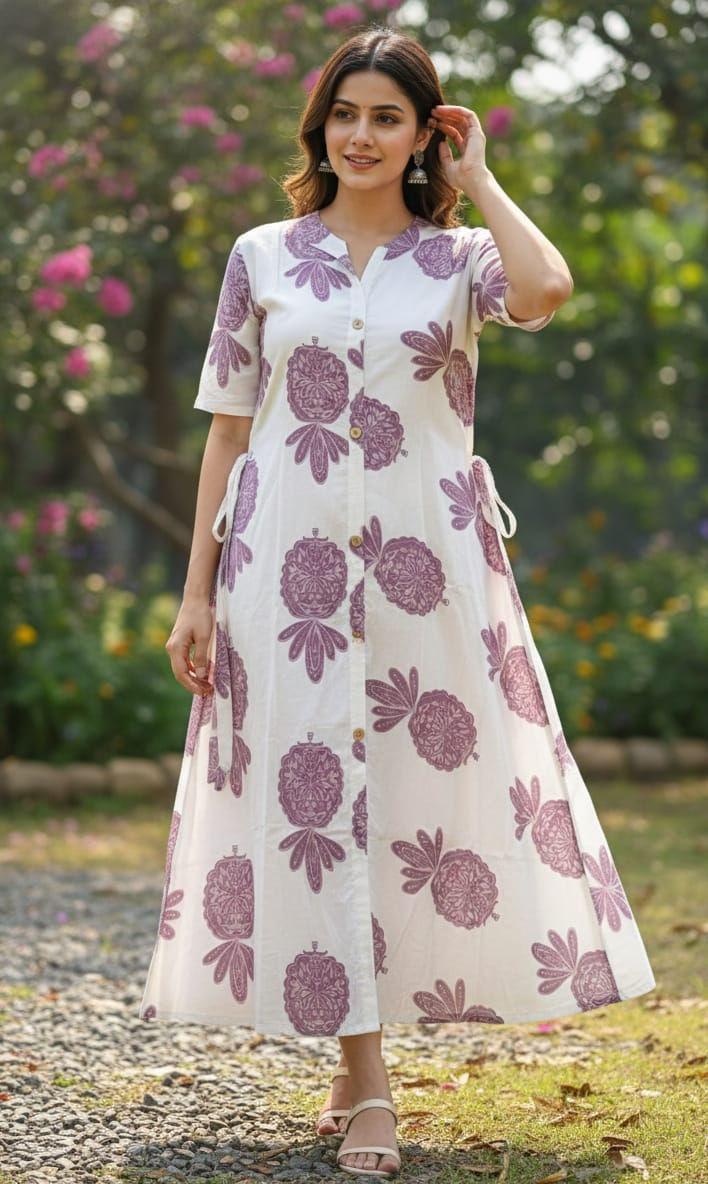 🌸 Floral Block Print Cotton One-Piece Kurti