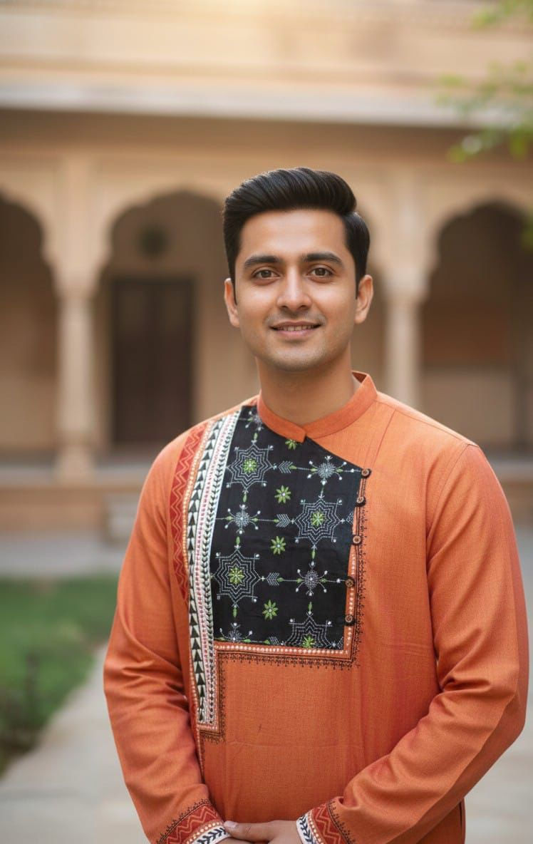 Make a bold ethnic statement with the Shamglamify Arjun Rust Khadi Tribal Panel Kurta, designed for men who appreciate heritage craftsmanship with modern styling. Crafted from premium khadi cotton, this kurta delivers breathable comfort while showcasing a striking tribal-inspired contrast panel that instantly elevates your festive look.
