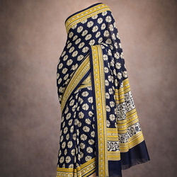 Black & Yellow Floral Mal Cotton Saree